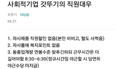사회적 기업 갓뚜기의 직원 대우 수준 ㄷㄷㄷㄷ