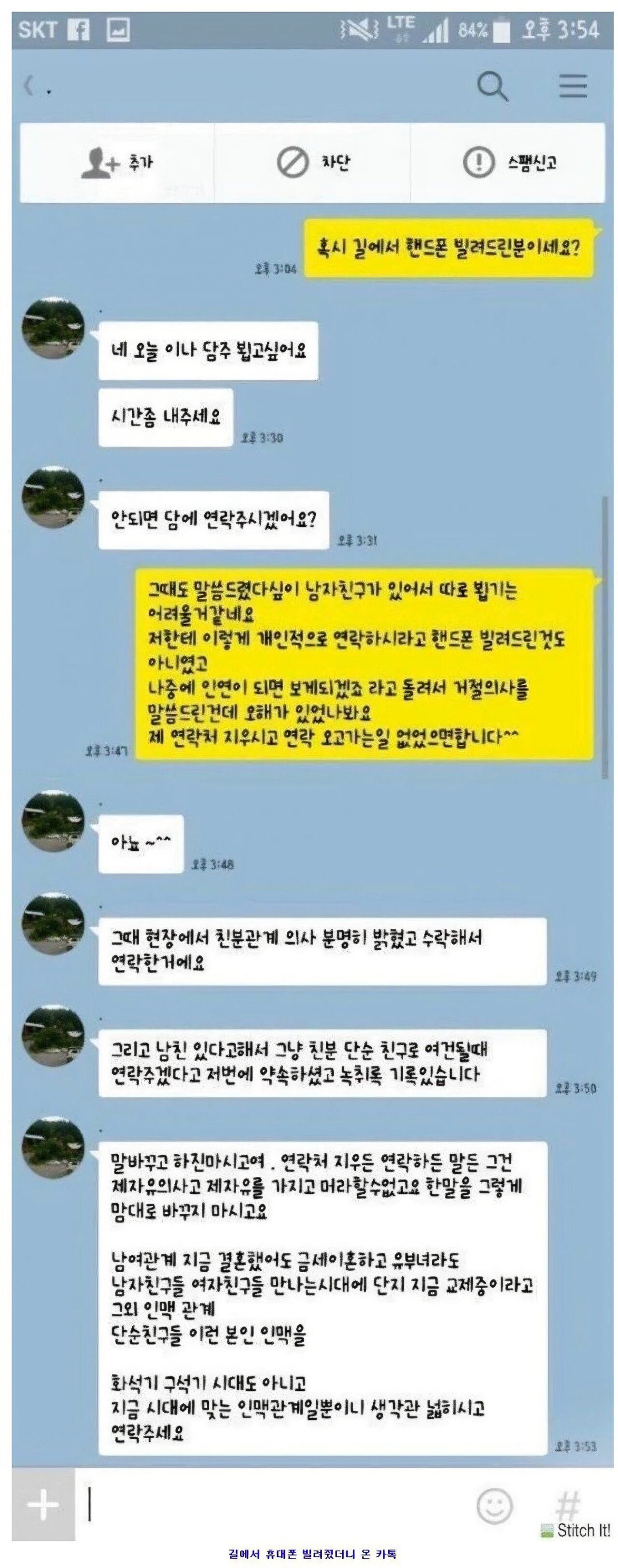 길에서 휴대폰 빌려줬더니 연락옴..