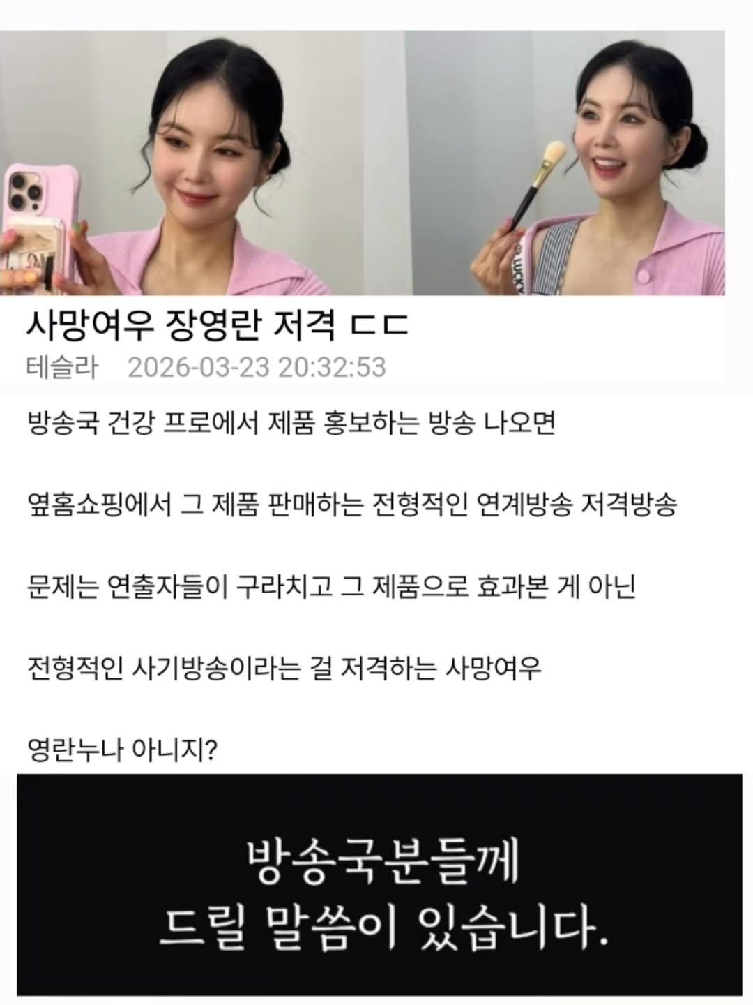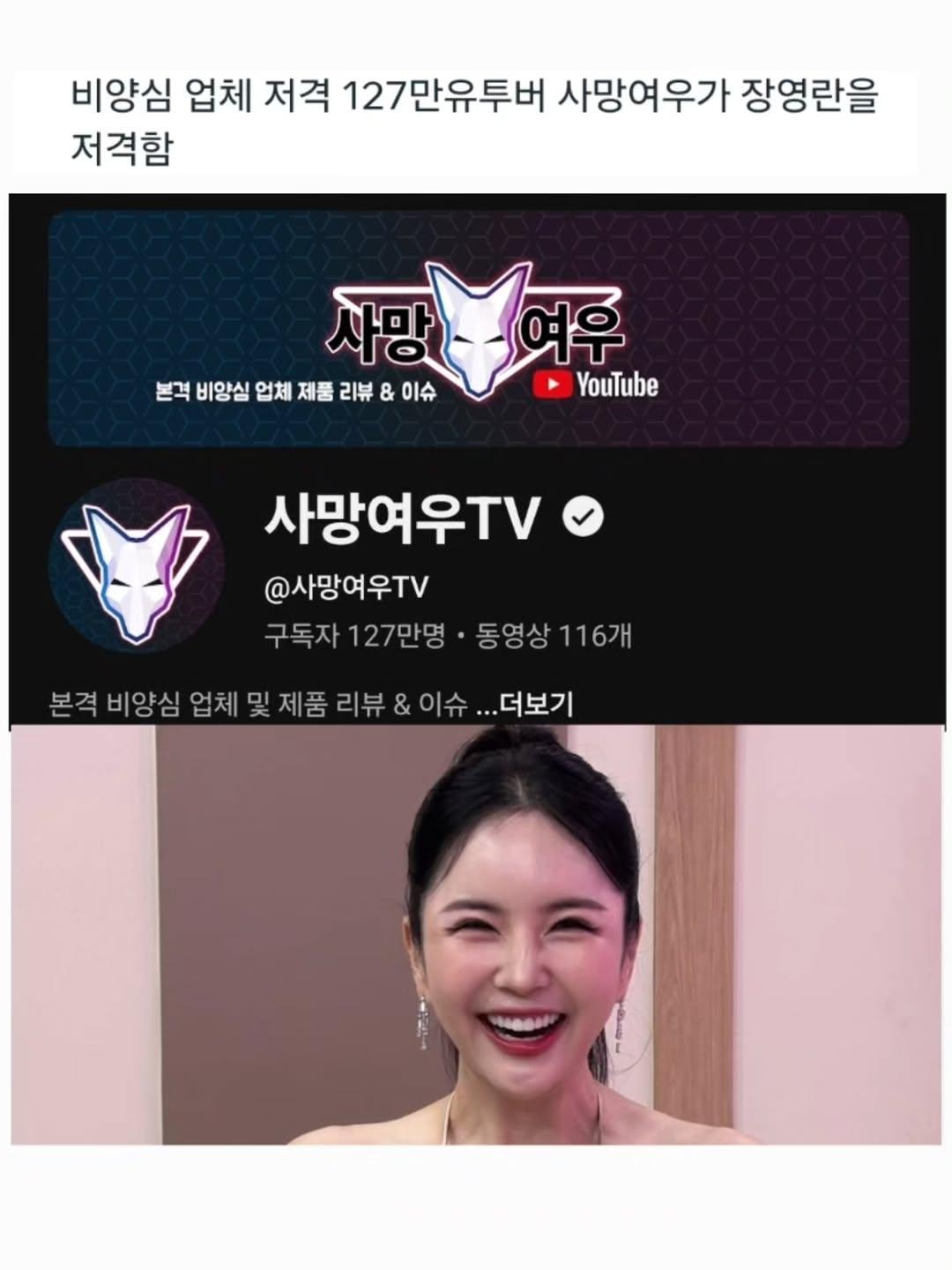 120만 유투버 사망여우에게 저격당한 장영란 근황