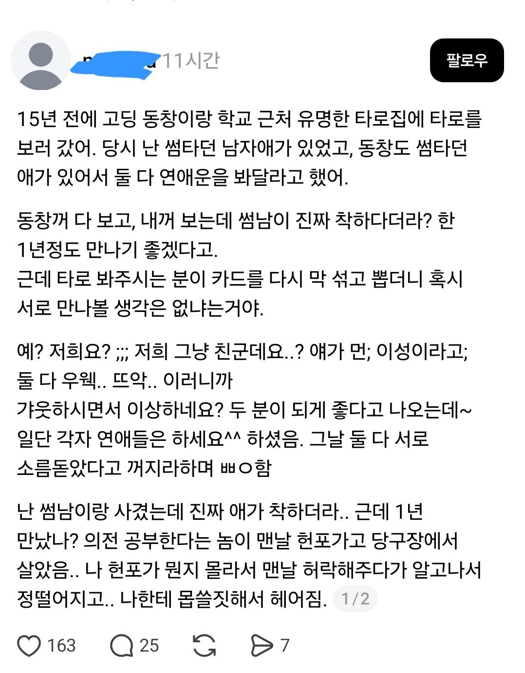 고딩 동창이랑 학교 근처 유명한 타로집에 타로를 보러 갔어. - 유머스레드