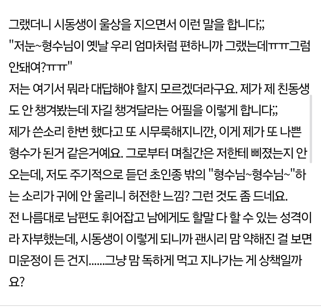 판)철없고 개념없는 시동생이 짜증나서 한마디 했는데