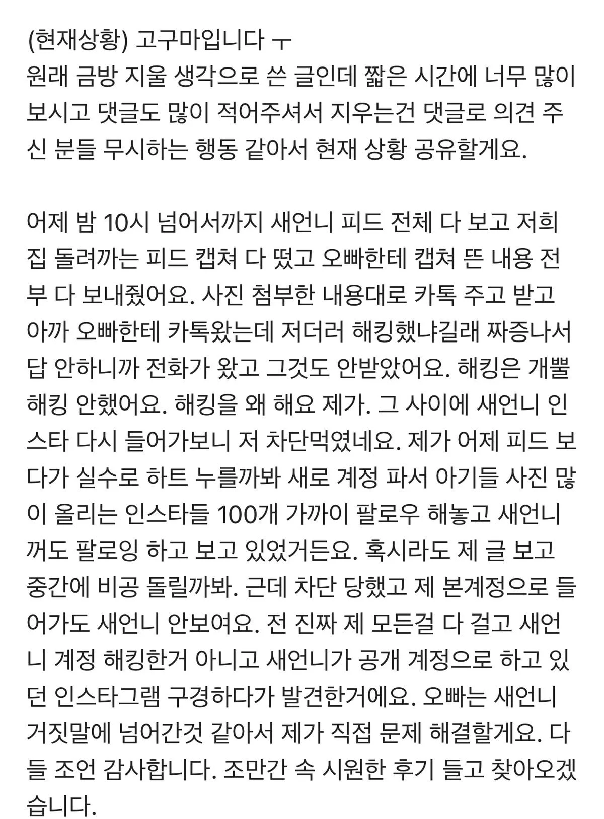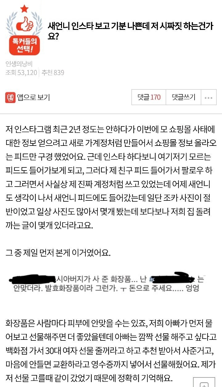 새언니 인ㅅ타 보고 기분 나쁜데.. 어떻게 해야 할까요? - 유머스레드
