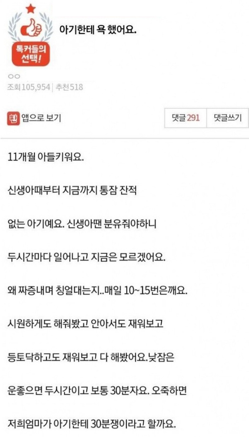 11개월 아기한테 욕 했어요....