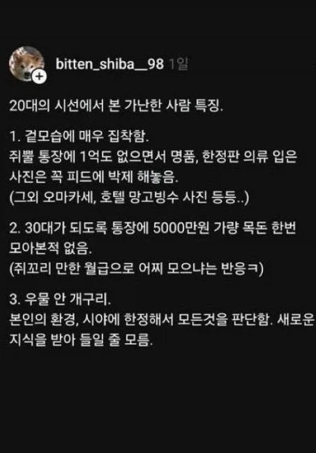 20대의 시선에서 본 가난한 사람의 특징