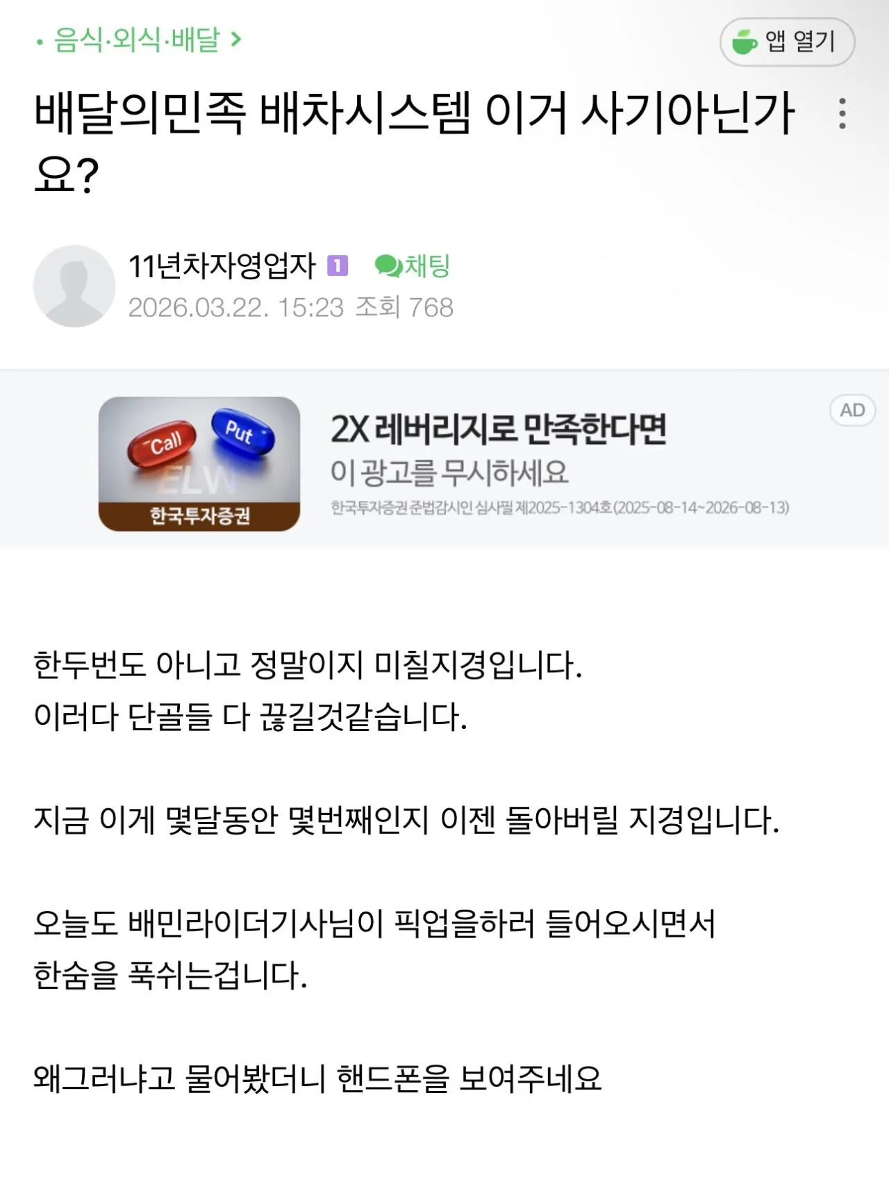 배민 배달 진짜 개ㅂㅅ같네