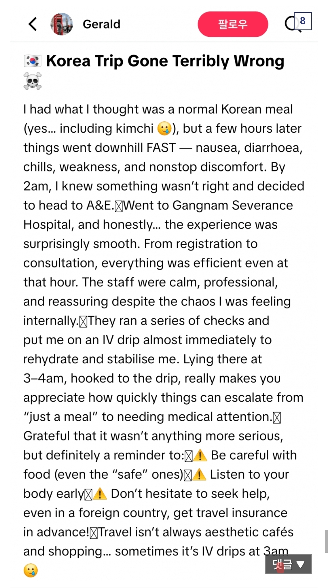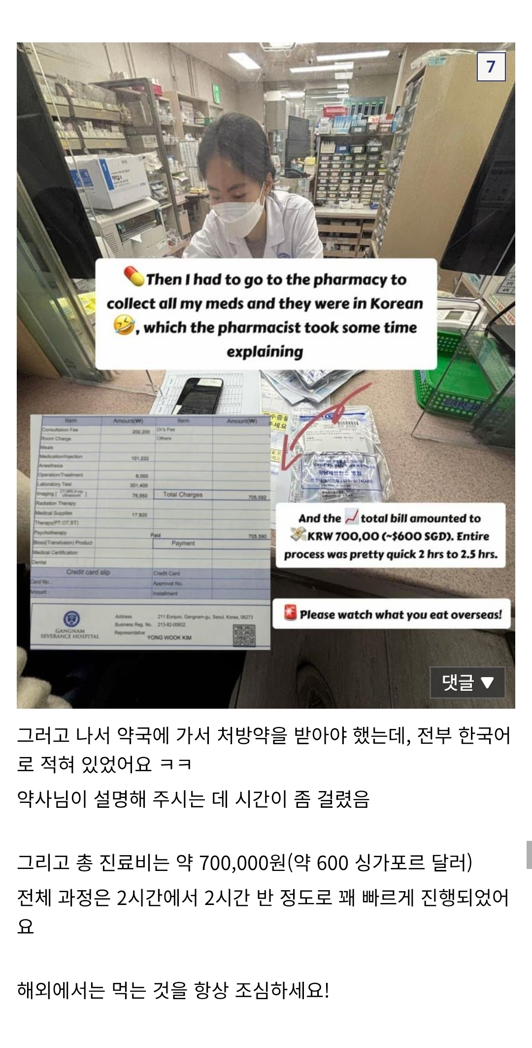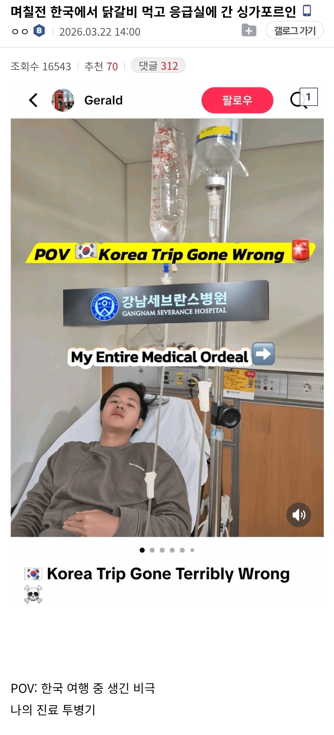 며칠전 한국에서 닭갈비 먹고 응급실에 간 싱가포르인 - 유머스레드
