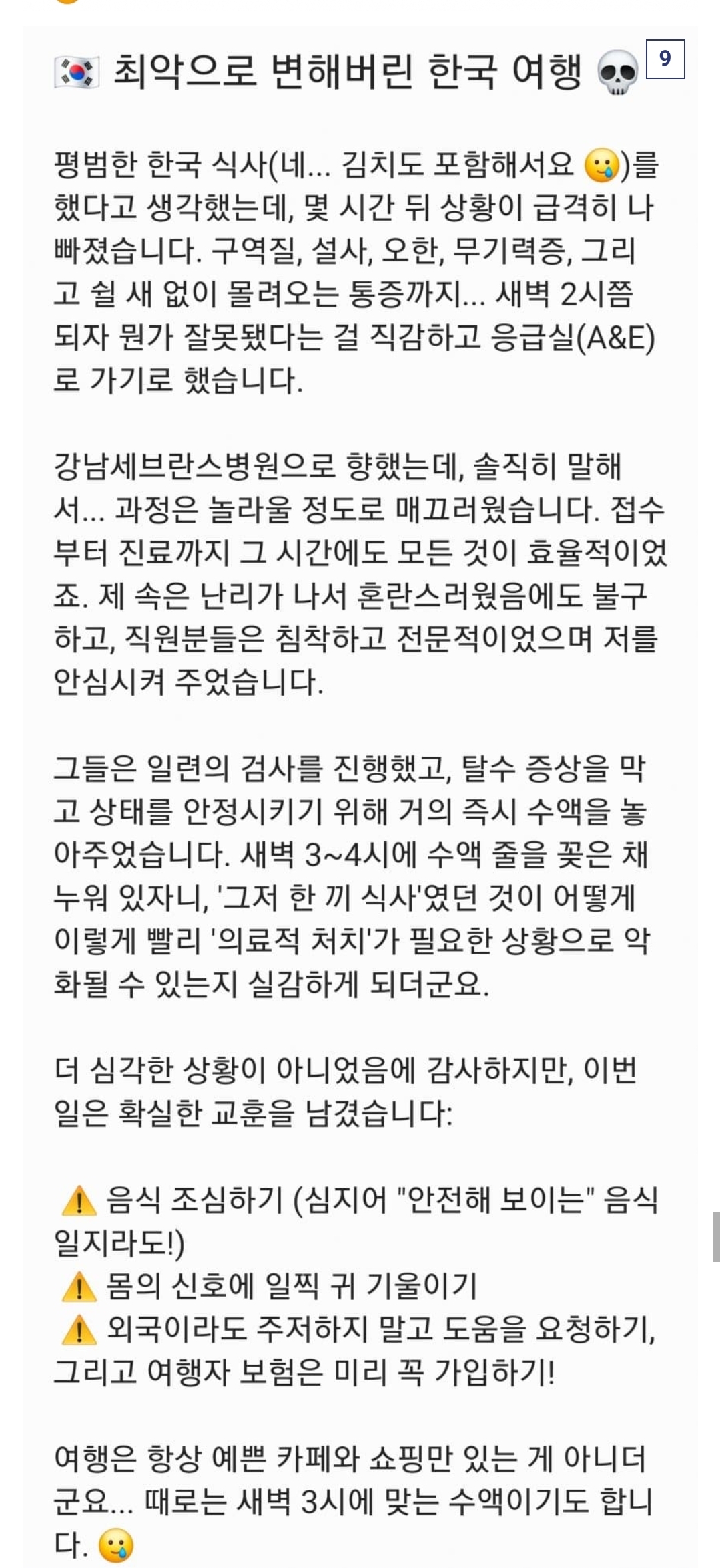며칠전 한국에서 닭갈비 먹고 응급실에 간 싱가포르인