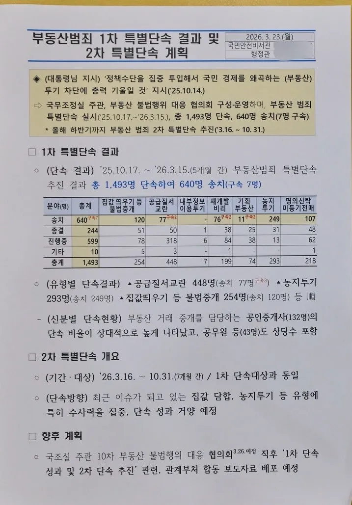 이재명 대통령, 부동산범죄 1차 특별단속 결과 공유