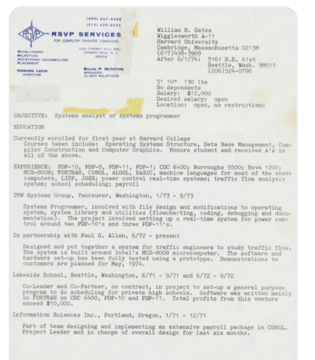 48년 전 빌게이츠가 쓴 첫 이력서 ㄷㄷㄷㄷ