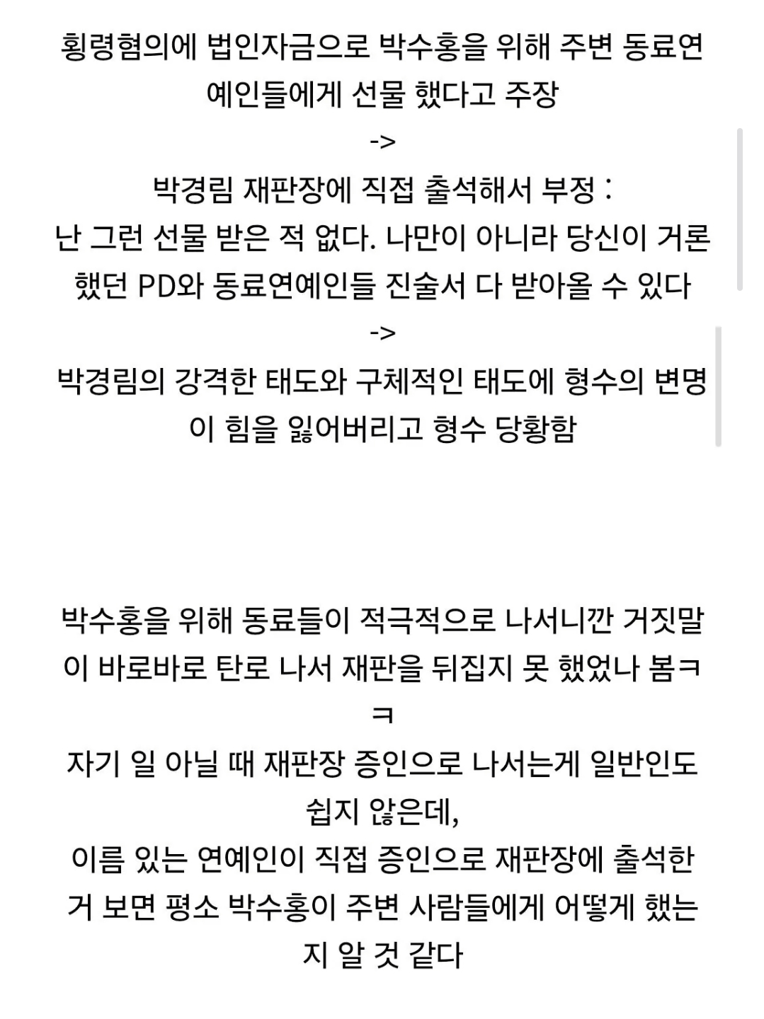 재판장에 박경림 등장하자 박수홍 형수가 사색이 된 이유