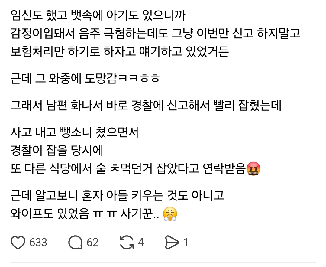 예전에나임신했을 때 어떤 아저씨가 정차중 뒷방사고내서