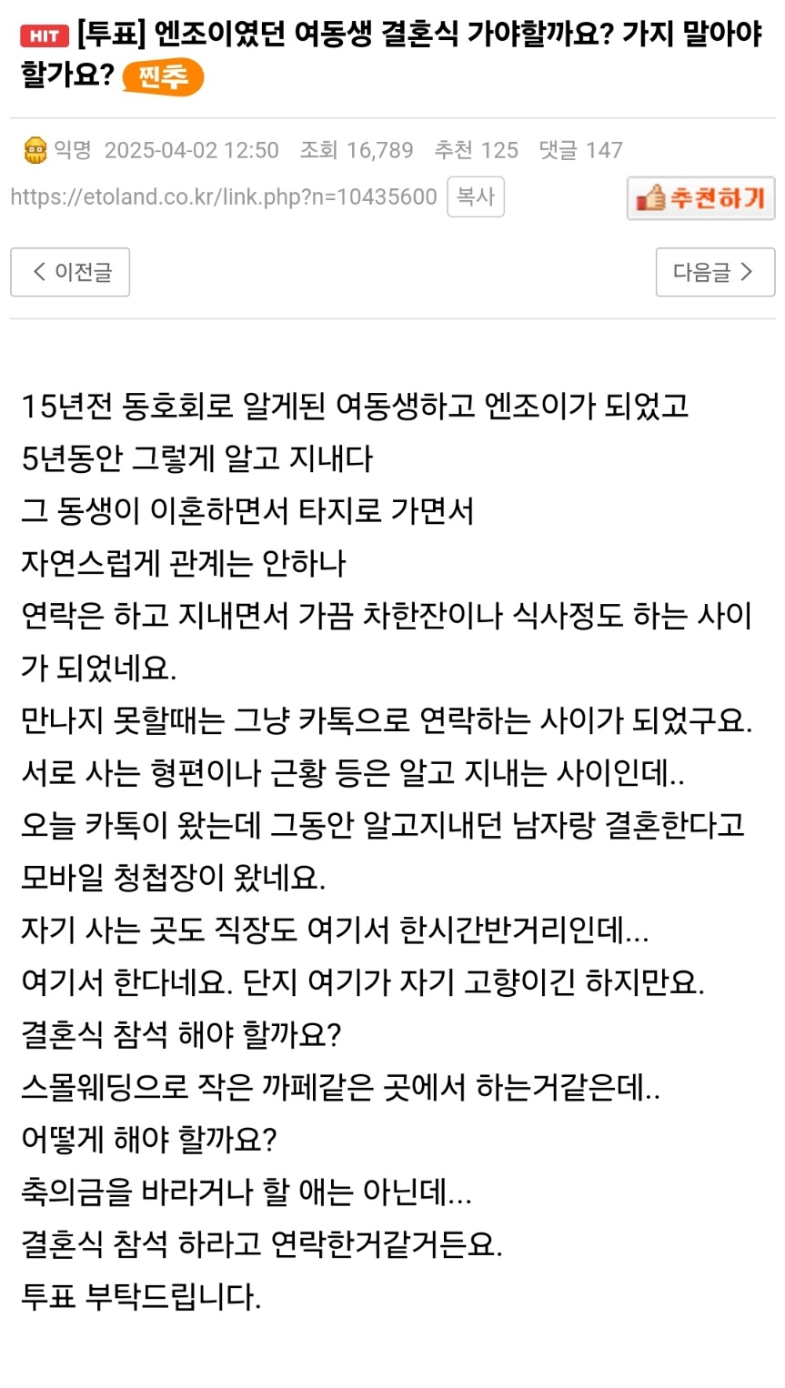 엔조이였던 여동생 결혼식 가야할까요? - 유머스레드