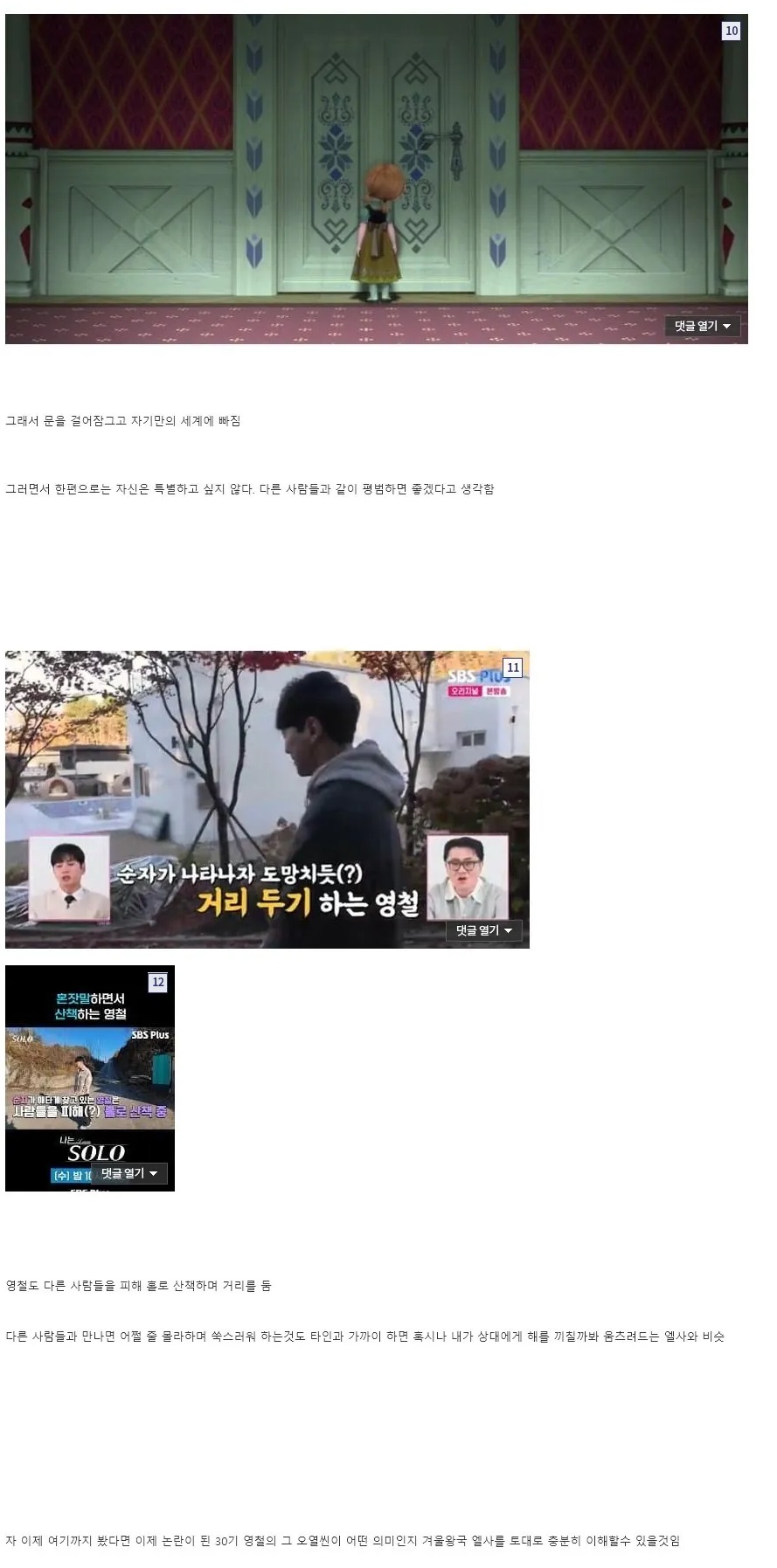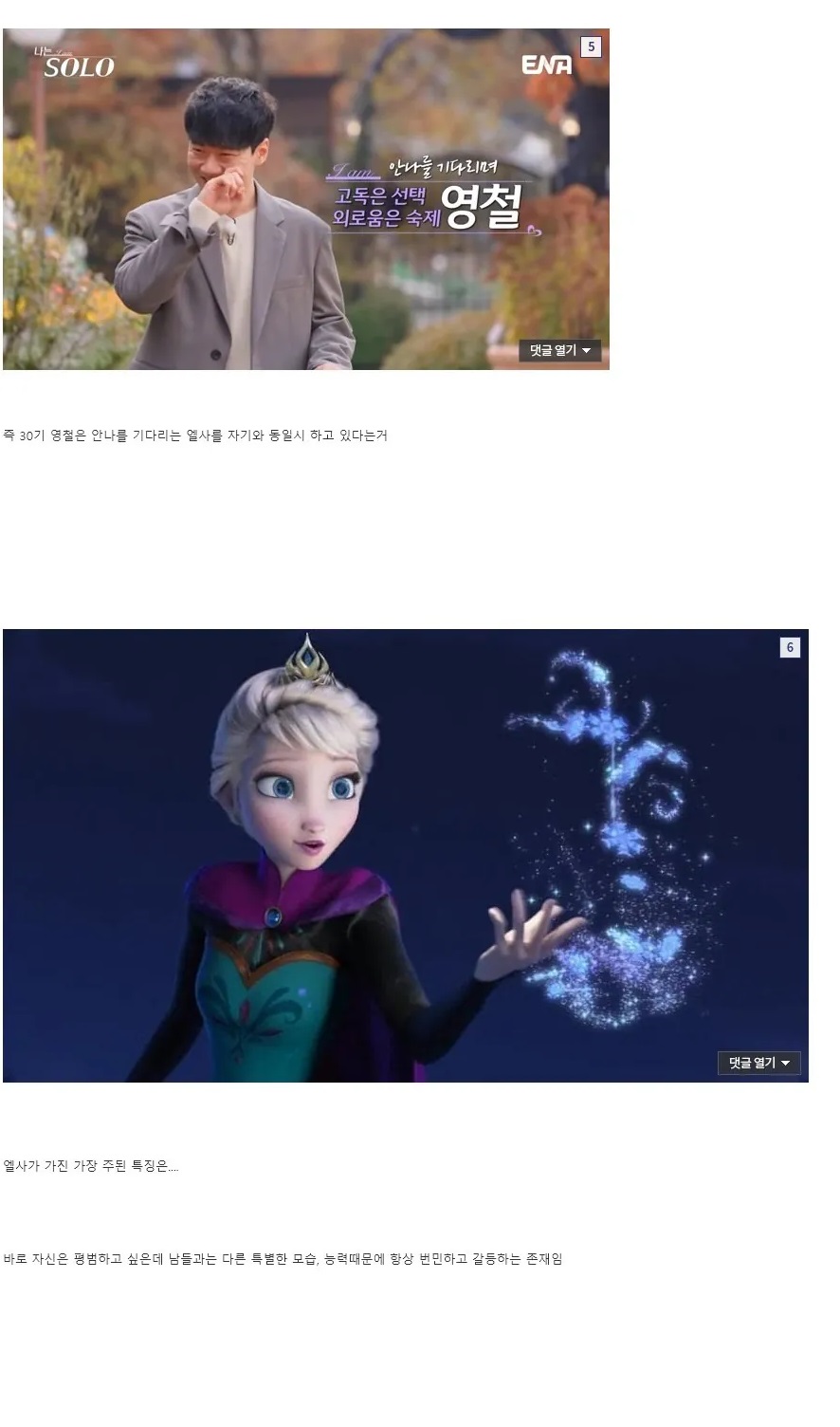 겨울왕국으로 보는 나솔 30기 영철이 왜 그런 행동을 했는지 심리